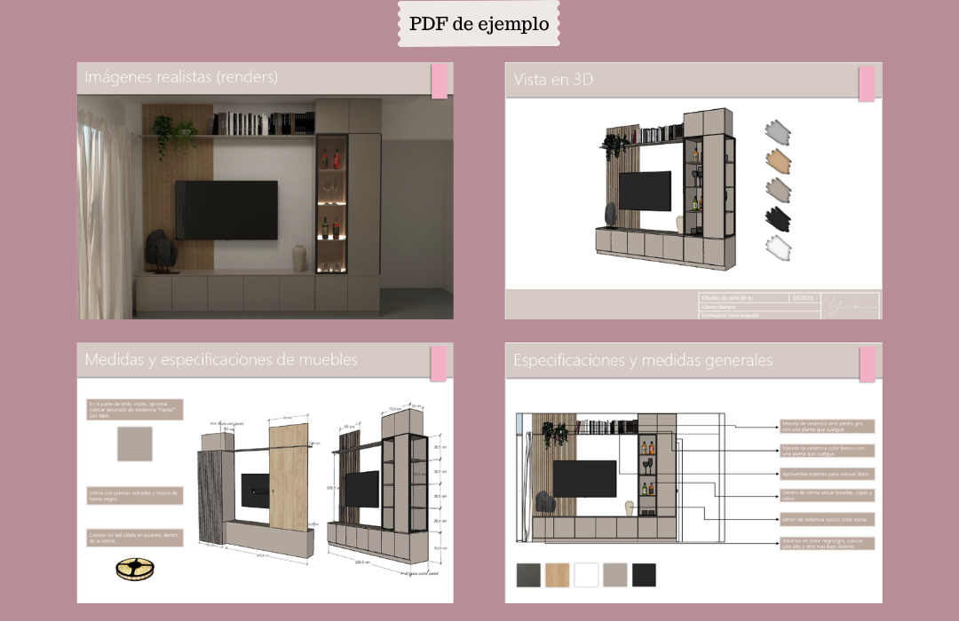 Diseñamos tu escritorio o home office a medida, enfocado en comodidad y orden. Incluye reunión inicial, imágenes realistas, materiales y medidas definidas, y un PDF final listo para que tu carpintero pueda llevarlo a la realidad fácilmente.