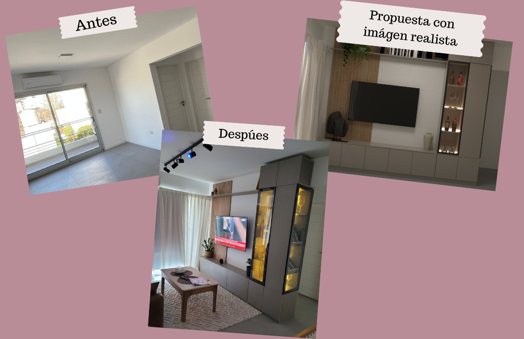 Diseñamos tu rack de TV a medida, pensado para integrar guardado, tecnología y estética. Incluye reunión inicial, imágenes realistas, definición de materiales y medidas, y un PDF final con todo listo para que tu carpintero pueda hacerlo sin dudas.